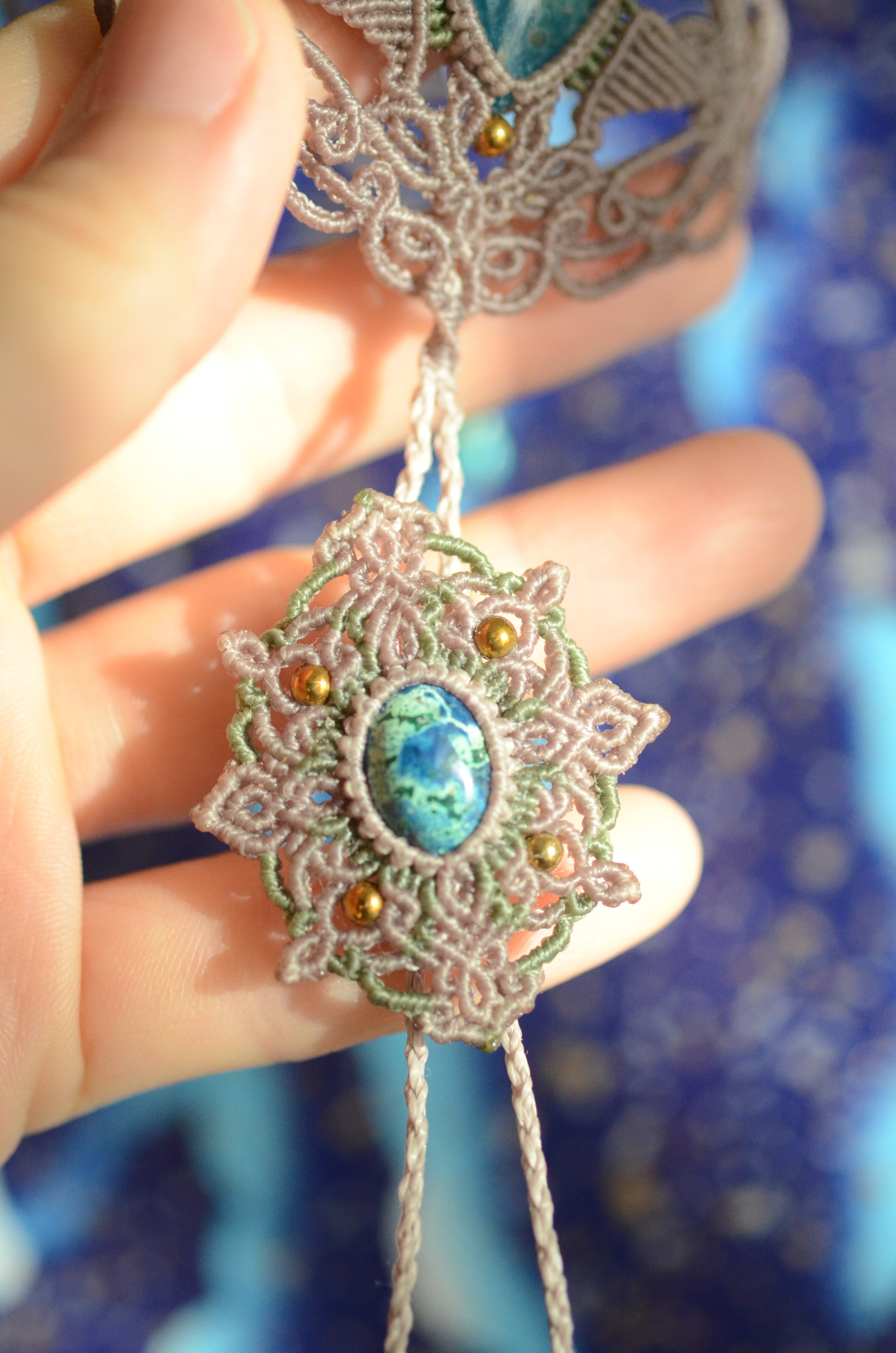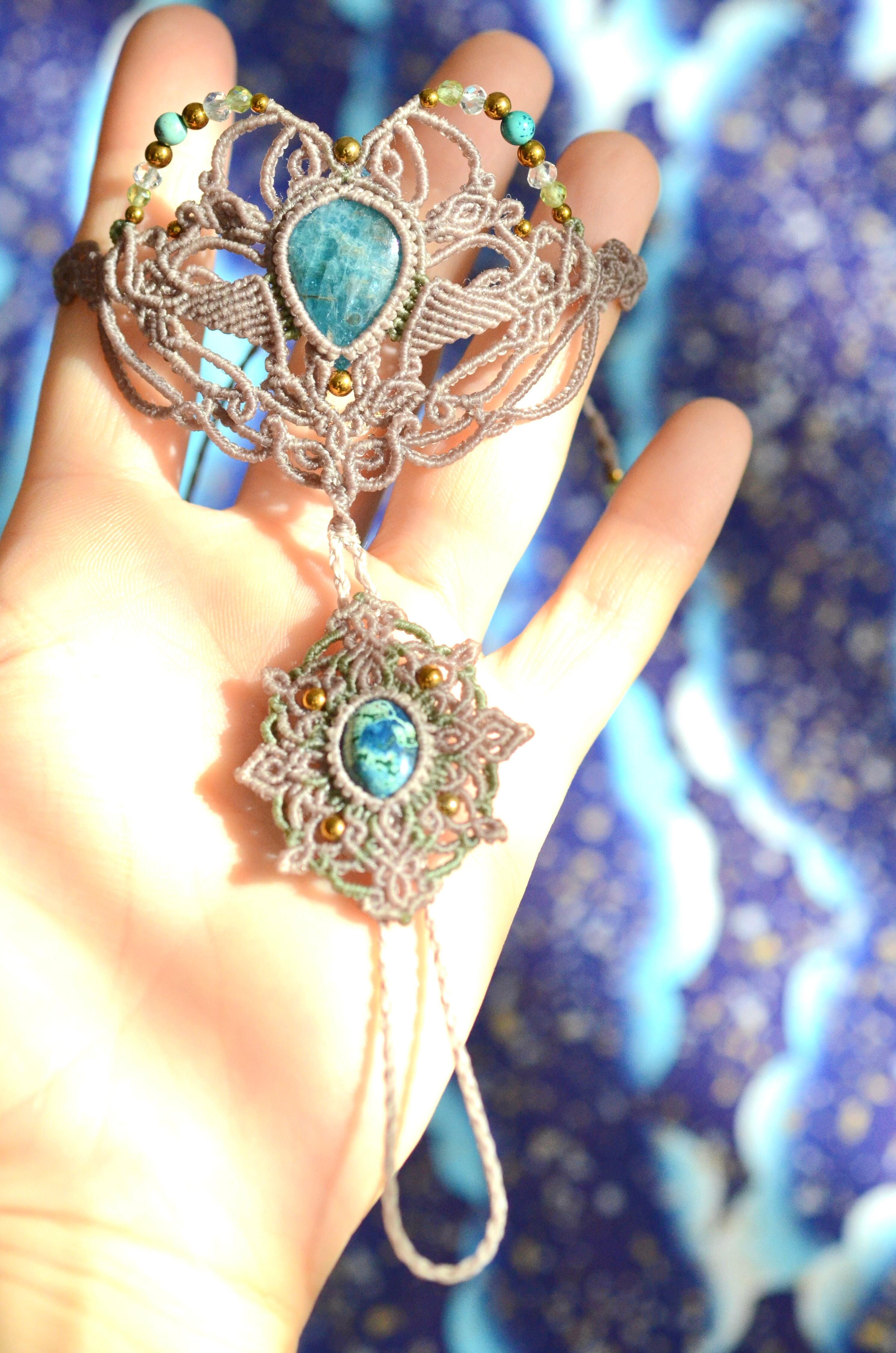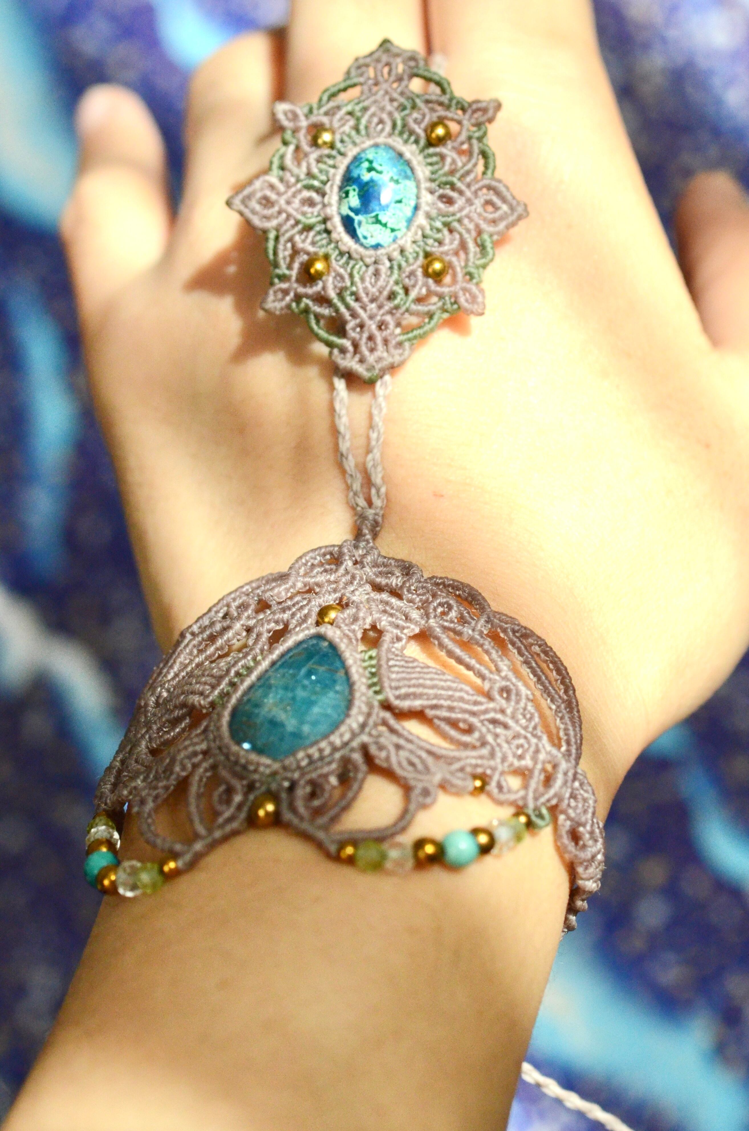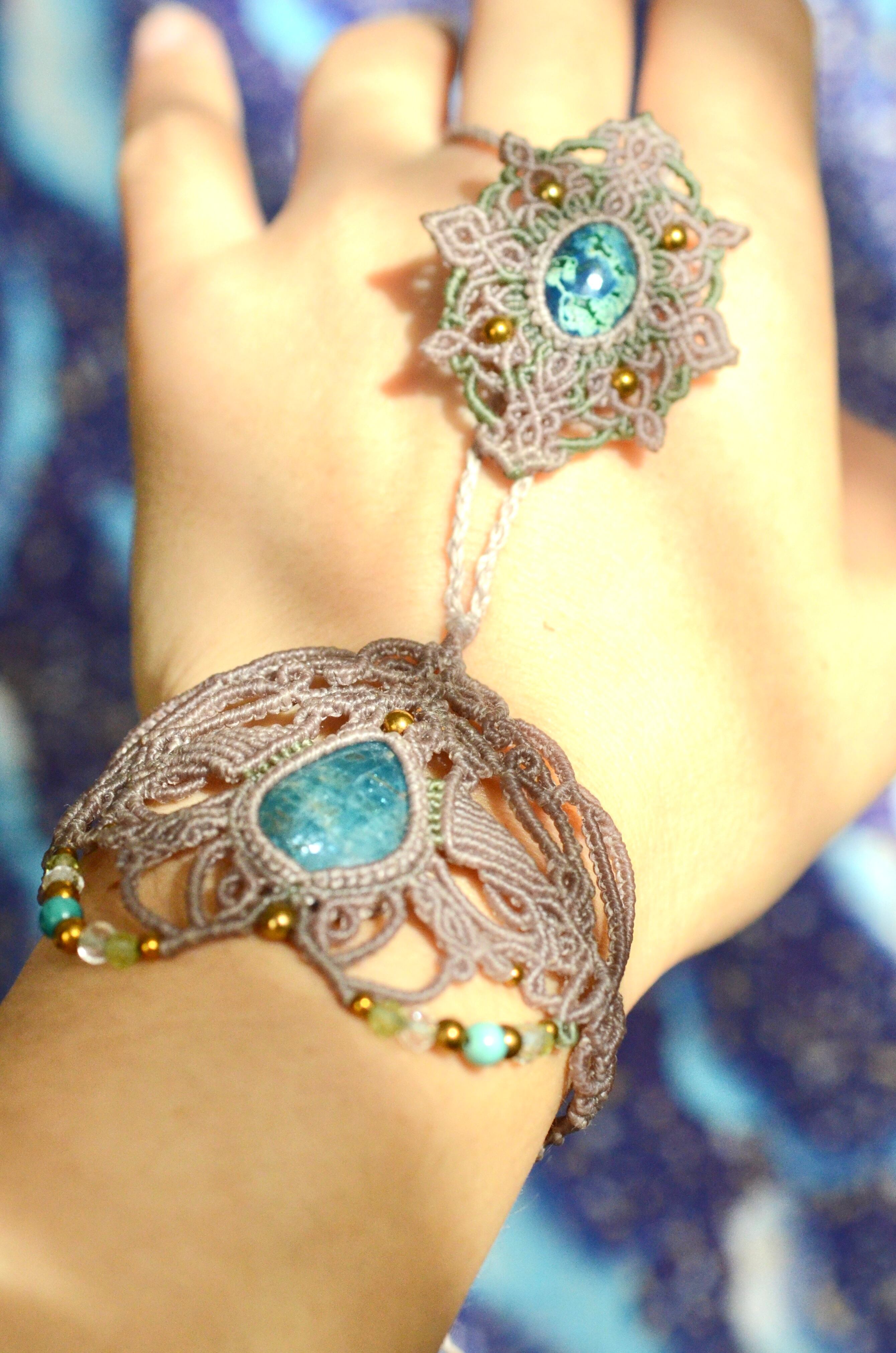 クリソコラ&ブルーアパタイト マクラメパンジャブレス
