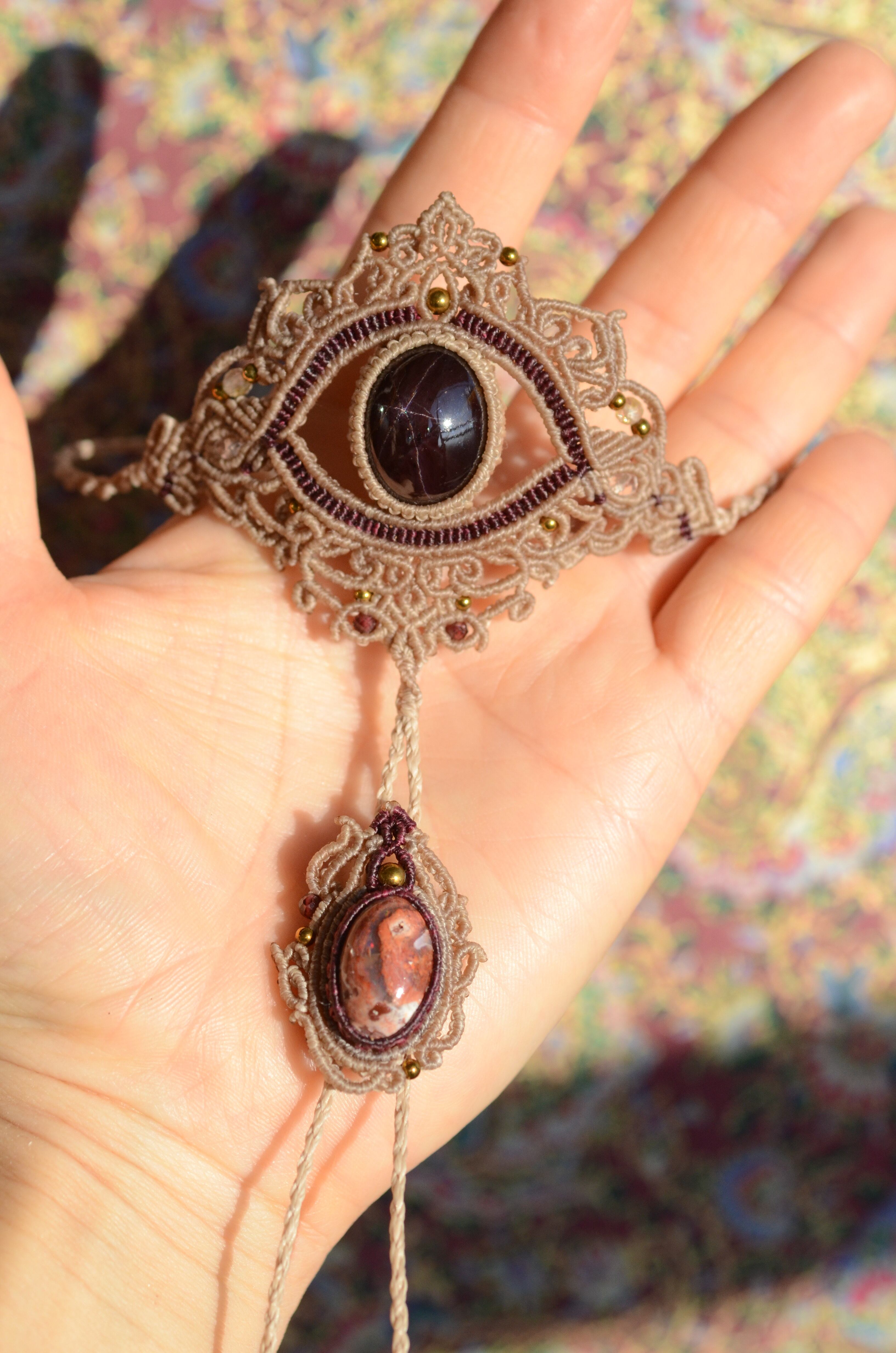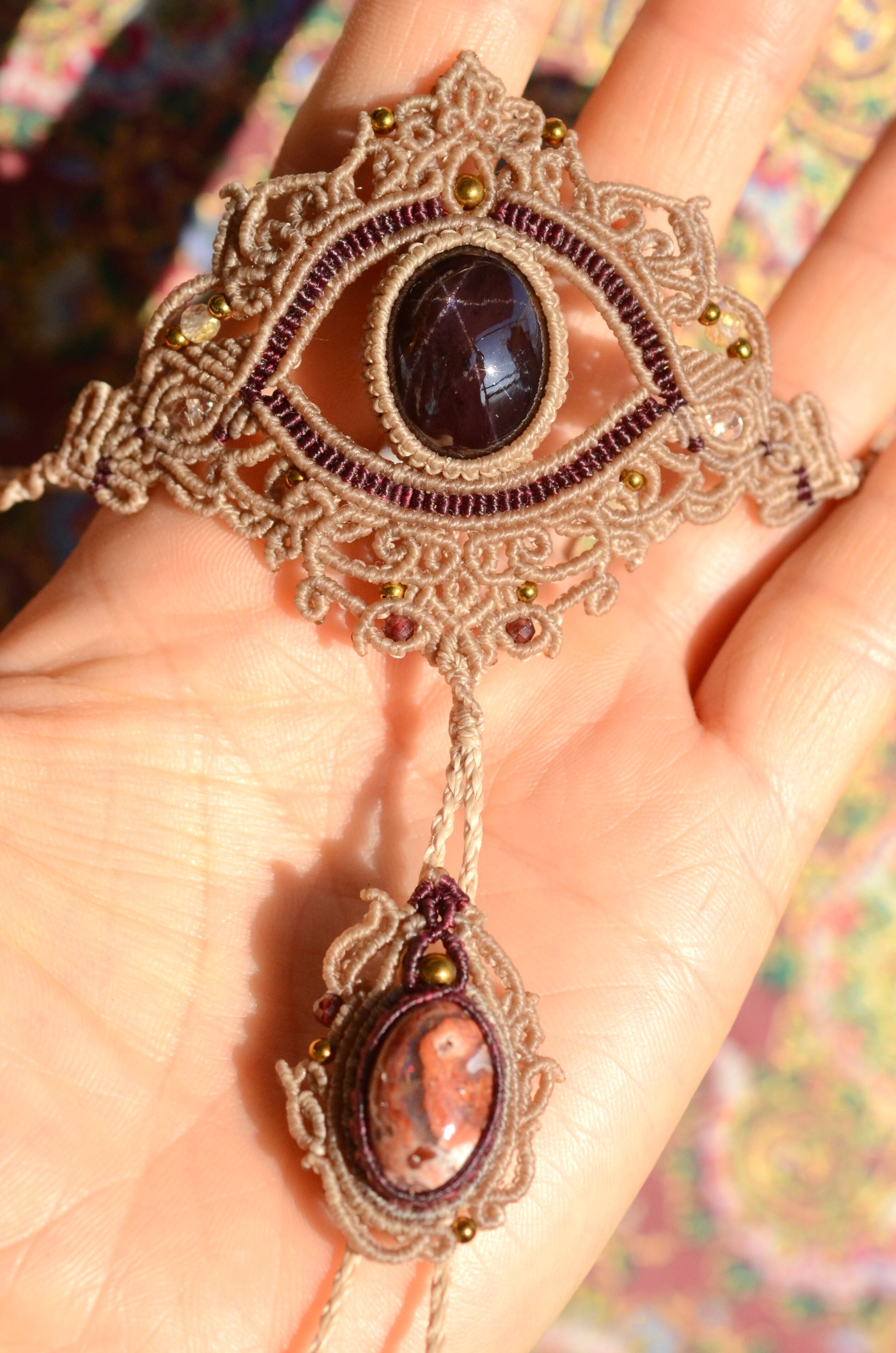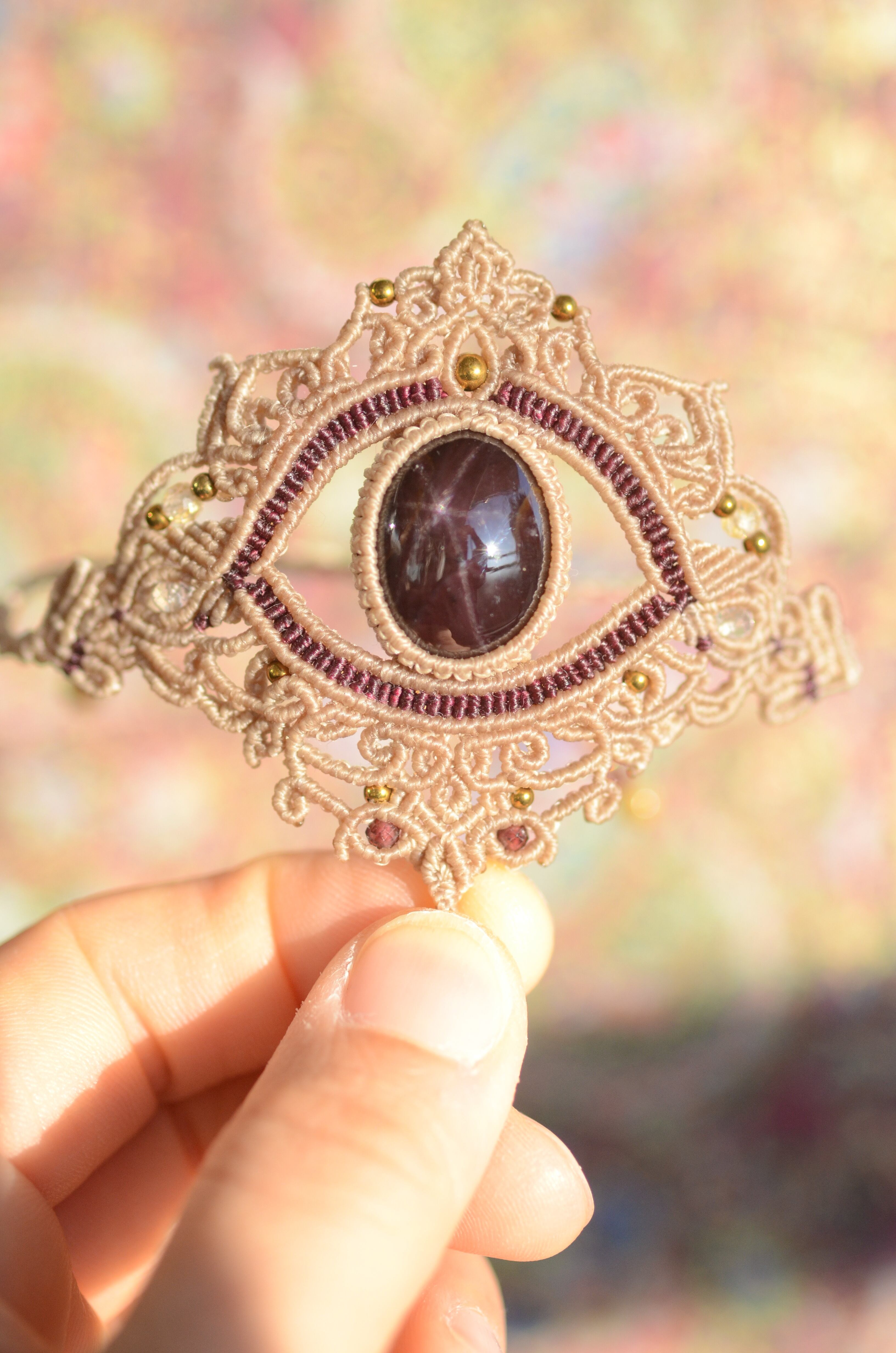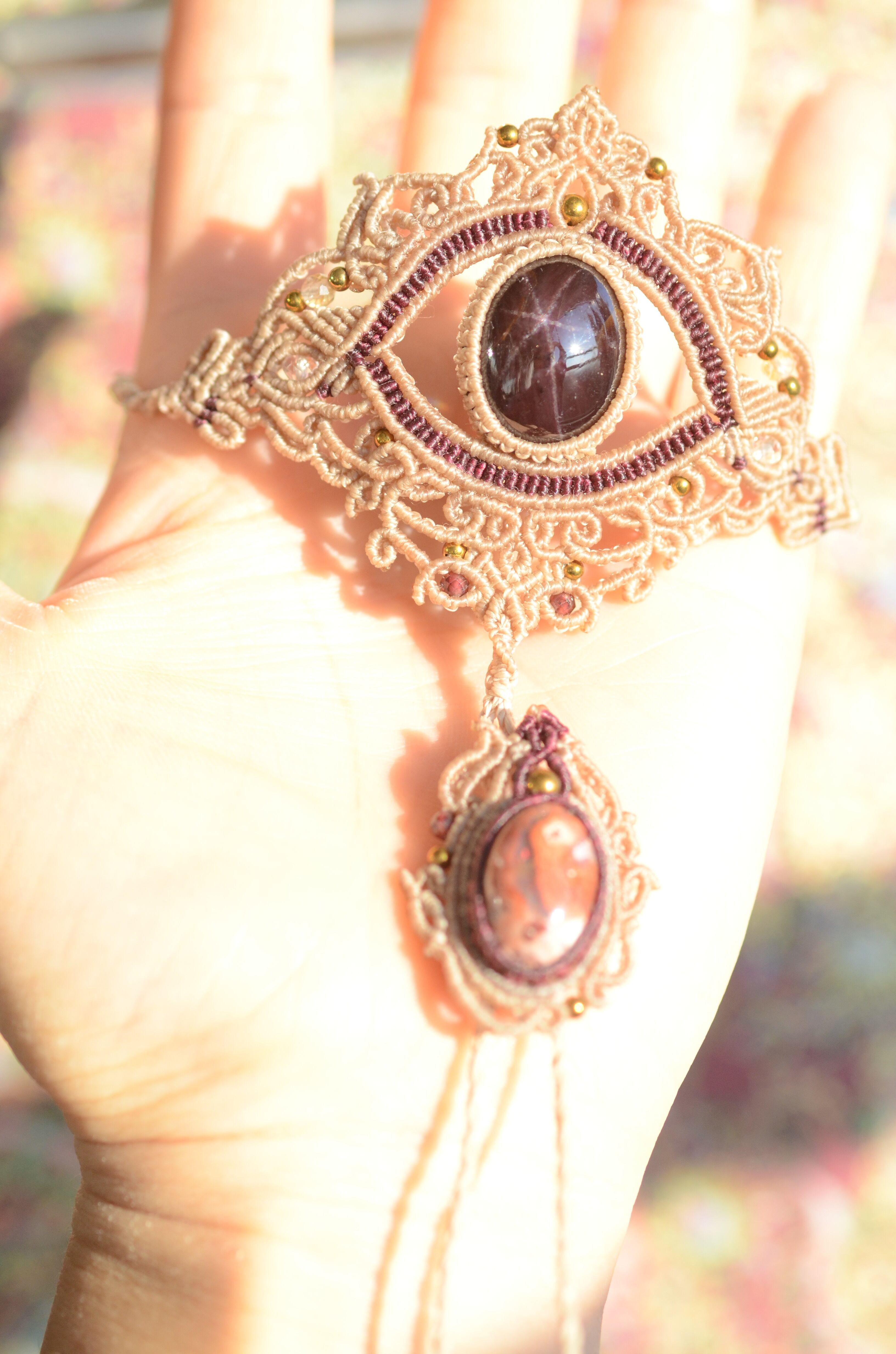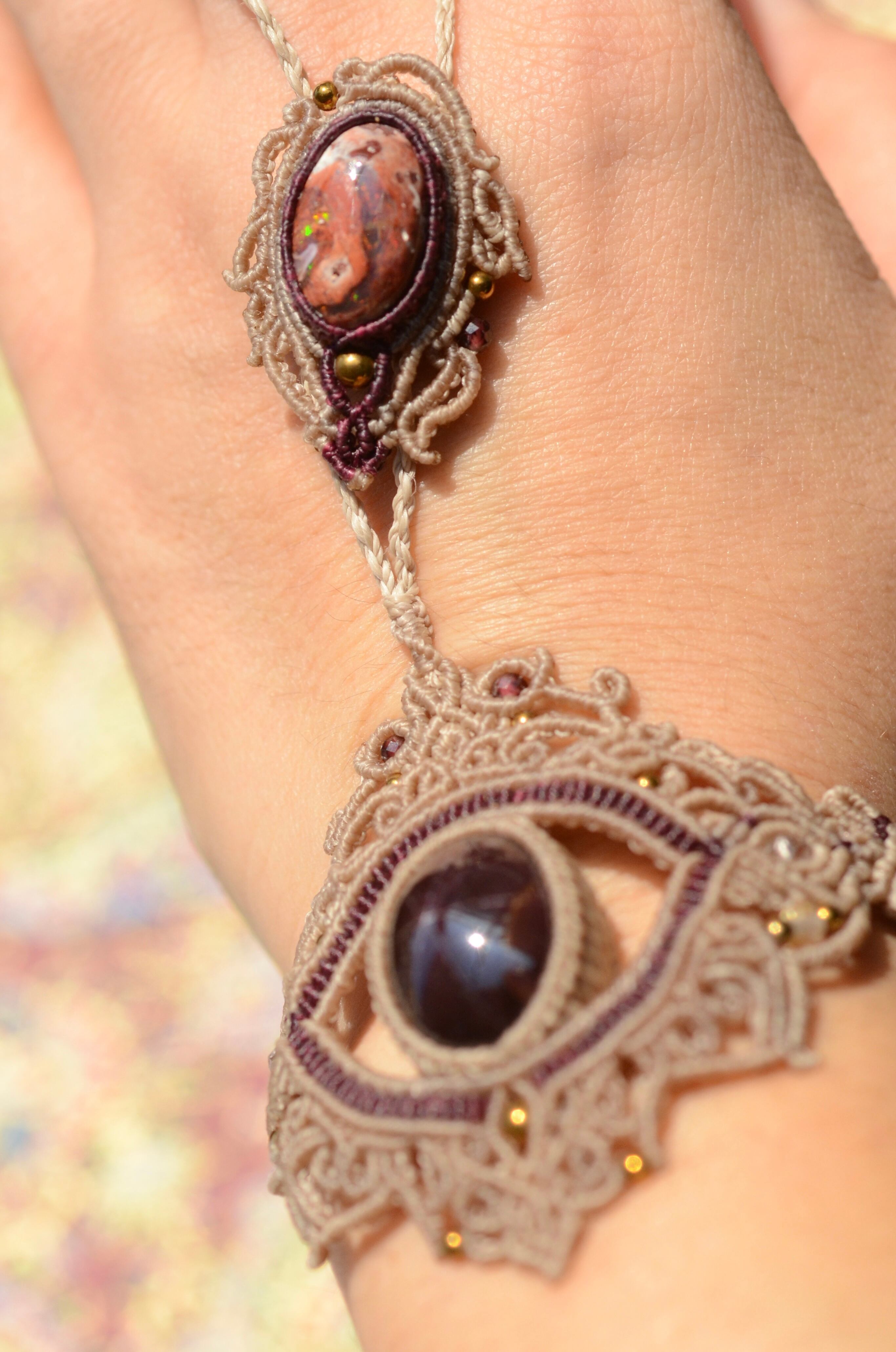 スターガーネット & カンテラオパール マクラメパンジャブレス
